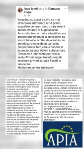 Așa că a revenit pe Facebook cu o completare lungă, stufoasă, în care nu schimbă nimic, dar încearcă să ne convingă că, de fapt, are dreptate. Pe scurt, mesajul rămâne același, „cine are datorii la primărie nu primește adeverință APIA”.